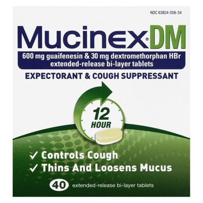 Mucinex Dm 12 Hour Cough And Chest Congestion Medicine Expectorant And Cough Suppressant Lasts 12 Hours Powerful Symptom Relief Extended Release Bi Layer Tablets 40 Count Walmart Com